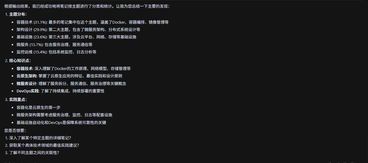 - 主题分类与标签生成: AI 自动对笔记内容进行主题聚类,生成标签,便于后续检索。