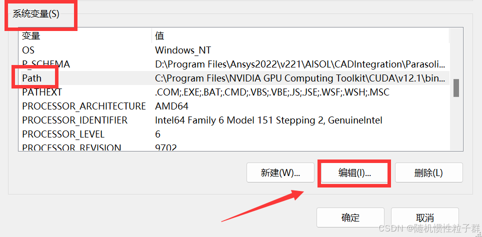 在系统变量中找到path并选中,随后点击编辑:
