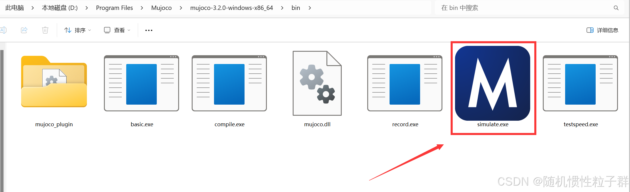 我们进入到mujoco文件夹中的bin目录中,找到simulate.exe执行文件: