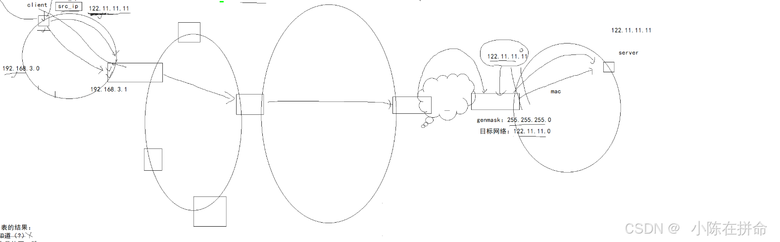 反正不管怎么跳转 因为网络是精心设计的,所以一定可以越来越接近目标网络(一般一路的default上去都能到公网IP)