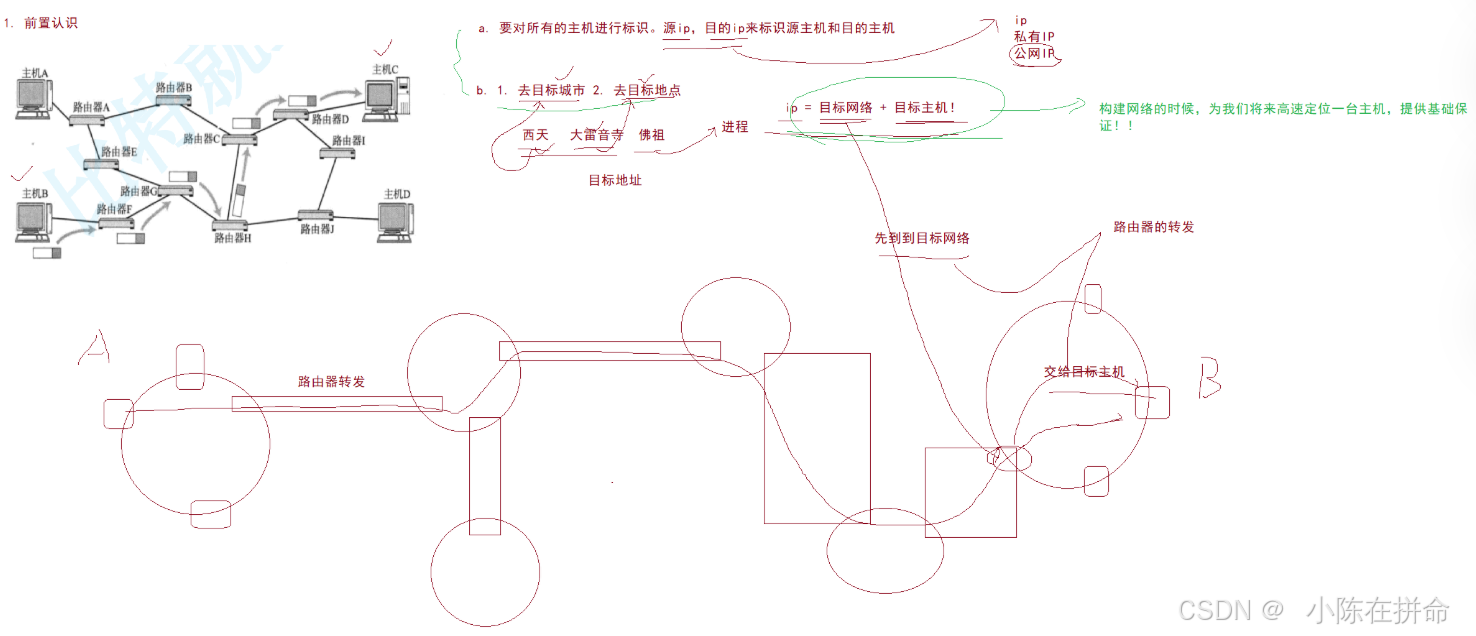 而要找到该主机,我们还需要确认他在哪个局域网里面,所以IP=目标网络+目标主机!(让我们可以在构建网络的时候为将来快速定位一台主机提供基础保证!!)