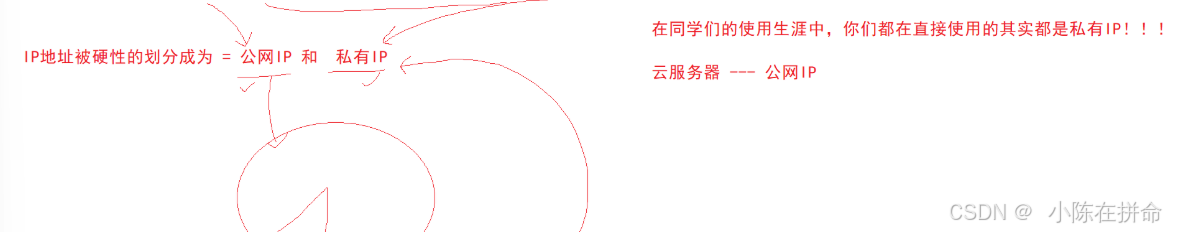IP被硬性分为了公有IP和私有IP,其实我们一般使用的都是私有IP,而云服务器是用的公网IP