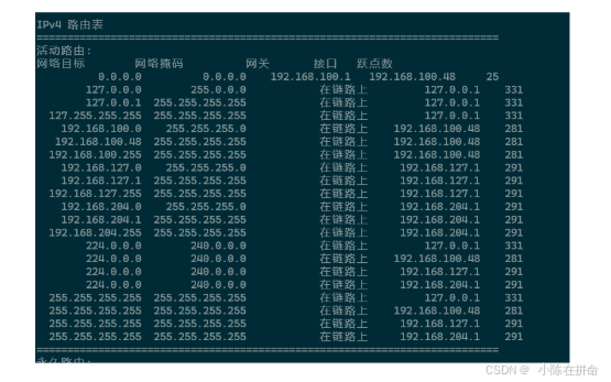 路由表可以使用route命令查看(本地主机也有路由表)