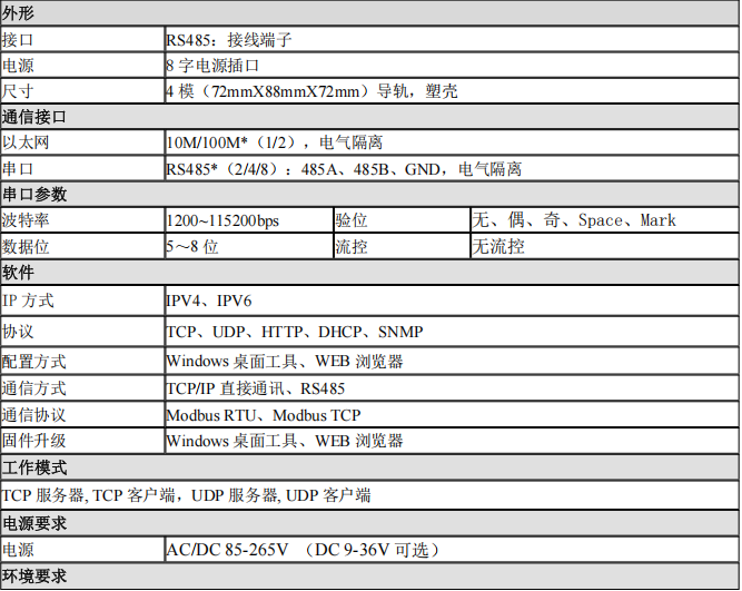 能源物联网数据采集设备 串口服务器功能参数介绍
