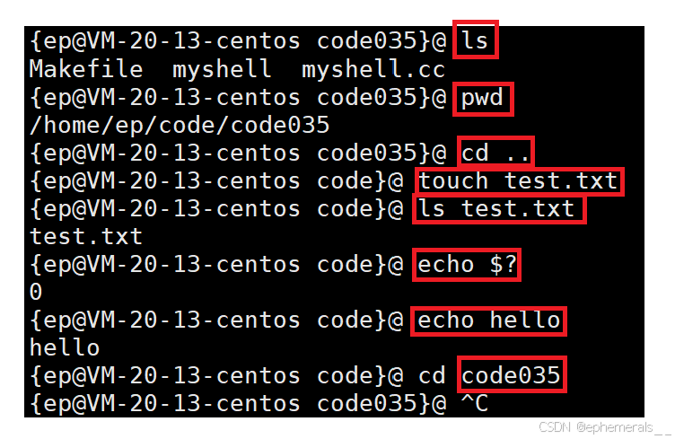 接下来,我们输入一些指令进行测试,看看我们实现的shell能否达到预期效果: