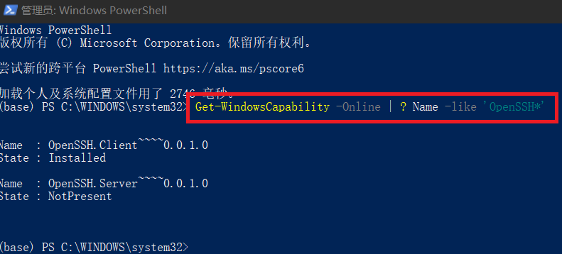 最终结果为如下,则代表着OpenSSH安装成功: