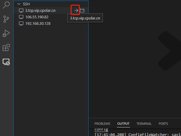 点击左侧工具栏中的远程按钮,可以查看远程连接,点击SSH TARGETS下面显示的服务器旁边的按钮进行连接操作