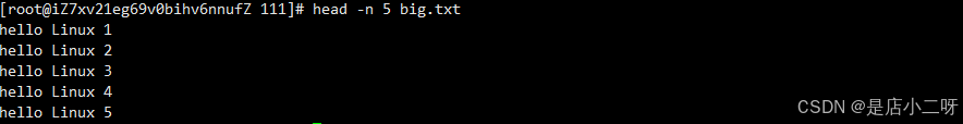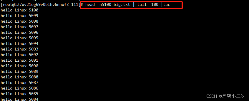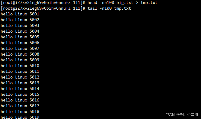 # i=1; while [ $i -le 10000 ]; do echo "hello Linux $i"; let i++; done > big.txt