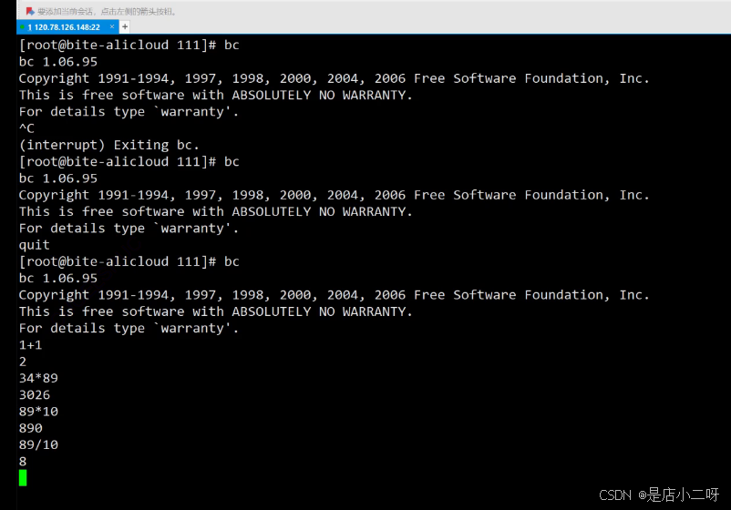 - [Ctrl]-d按键—通常代表着:『键盘输入结束(End Of File, EOF 戒 End OfInput)』的意思;另外,他也可以用来取代exit