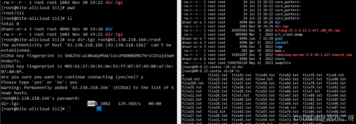按照上面的说法,这个压缩包用来便于网络传输的,那么这里我们操作两台Linux下进行信息的互传,需要使用rz和scp指令(这里仅当了解)