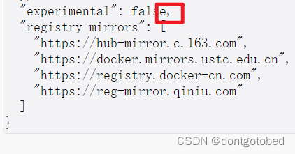在最后添加如下语句(分别是网易/科大镜像/Docker官方/七牛云,也可以加其他的如阿里云):