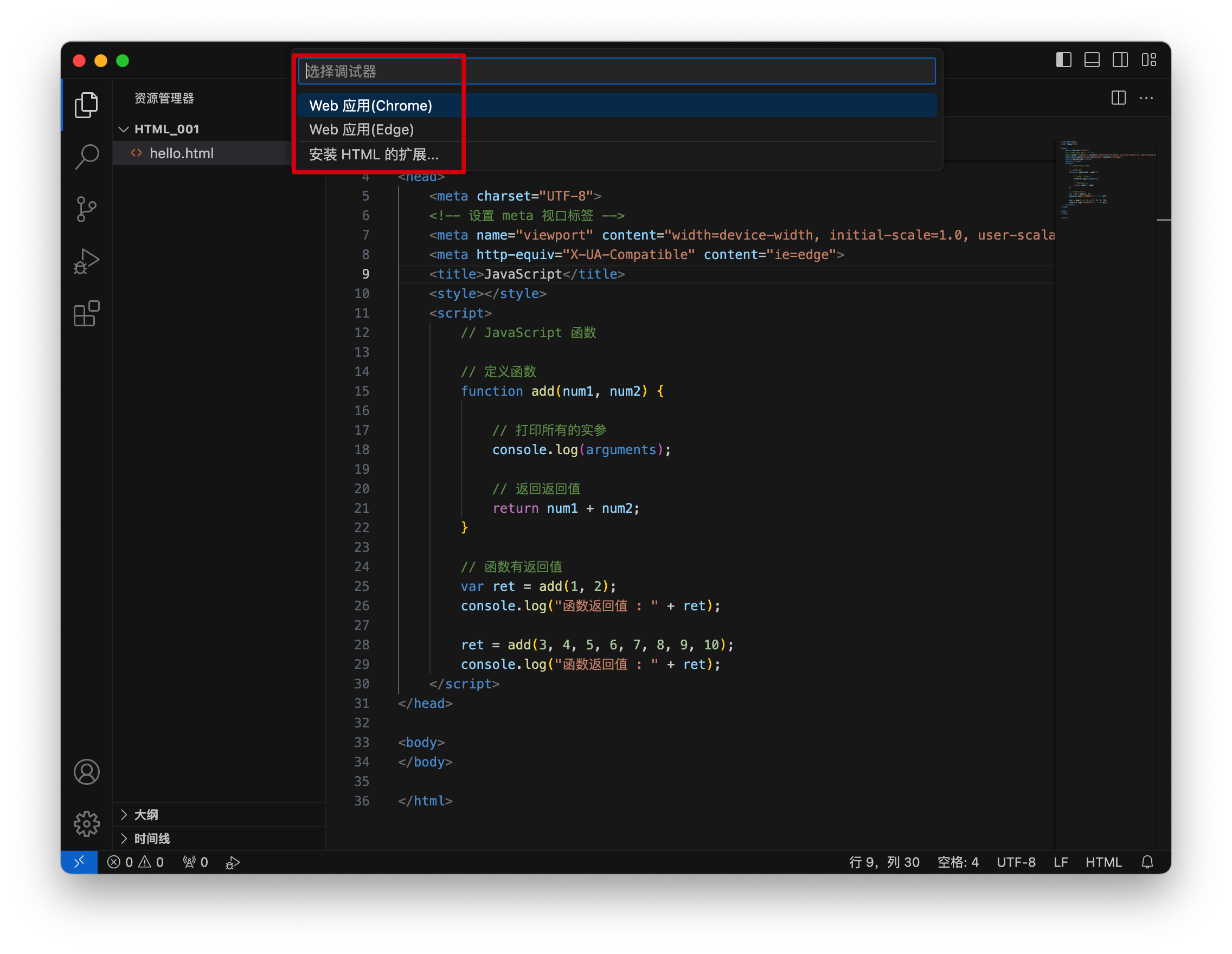 按下 Fn + F5 执行程序 , 会弹出选择 调试器 选项 , 这里选择 Web 应用 ( Chrome ) 选项 ;