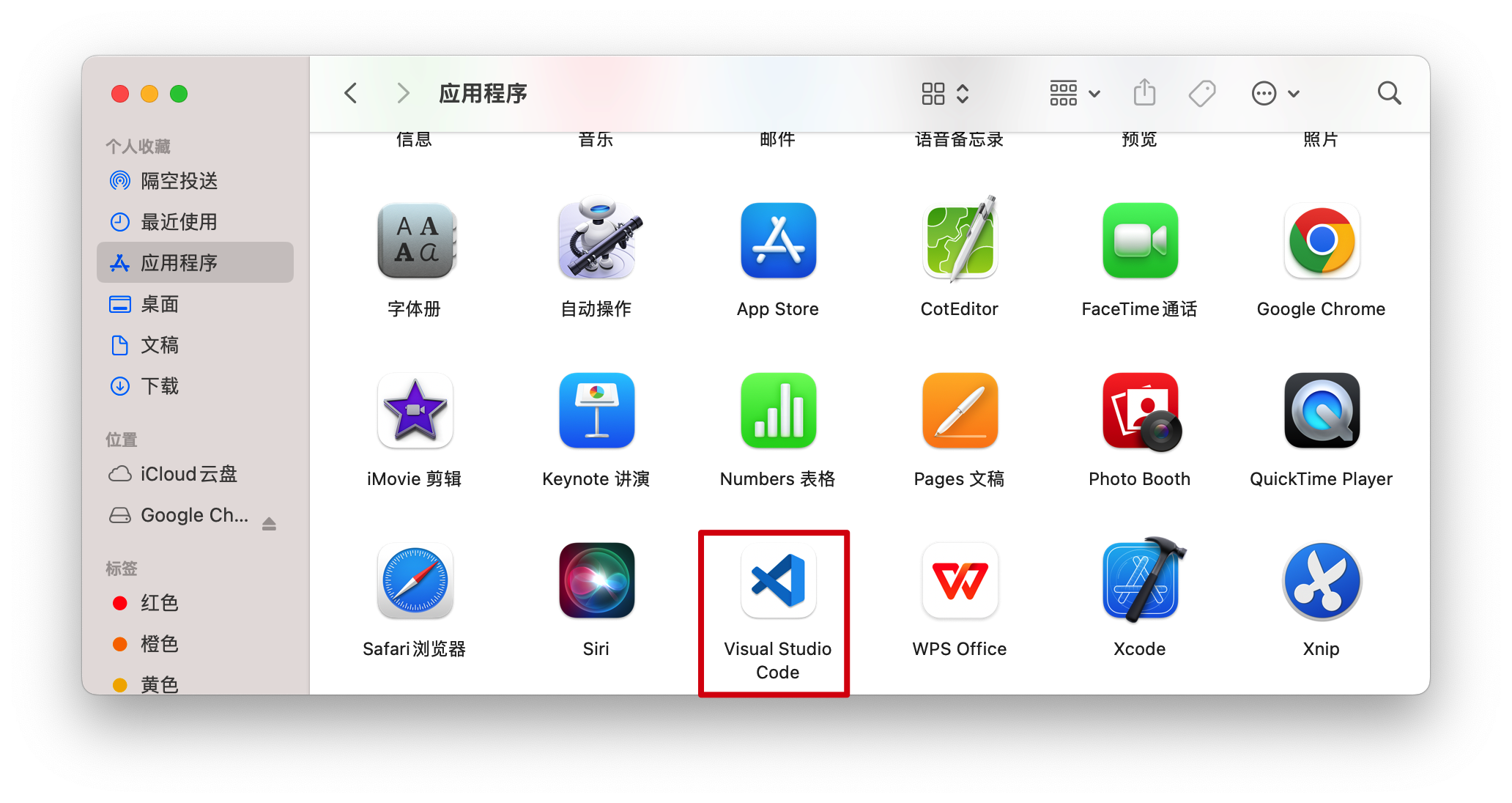将上述解压的 Visual Studio Code 文件 移动到 应用程序 目录中 ;