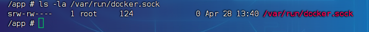 srw-rw---- 1 root 124 0 Apr 28 13:40 /var/run/docker.sock