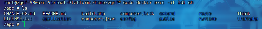 sudo docker exec -it 1d1 sh #进入phpthink的容器 这里只输入了三位容器id