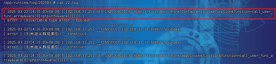 ThinkPHP 5.1/6.x/7.x/8.x runtime/log/