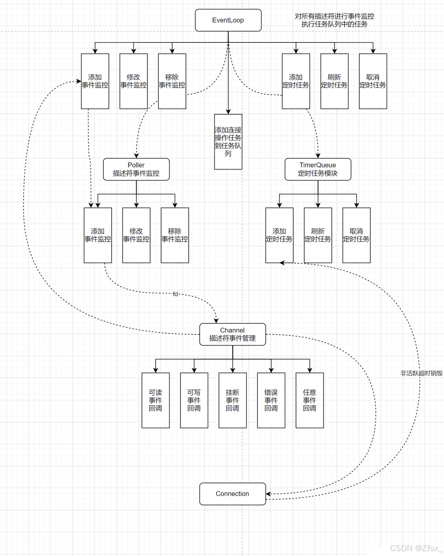 - 如果接下来的2号描述符是定时器事件描述符,定时器触发超时,执行定时任务,就会将345描述符给释放掉。这时候一旦345描述符对应的连接被释放,接下来在处理345事件的时候就会导致程序崩溃(内存访问错误。 因此这时候,在本次事件处理中,如果有释放连接的操作,并不能直接对连接进行释放,而应该将释放操作压入到任务池中, 等到事件处理完了执行任务池中的任务的时候,再去释放