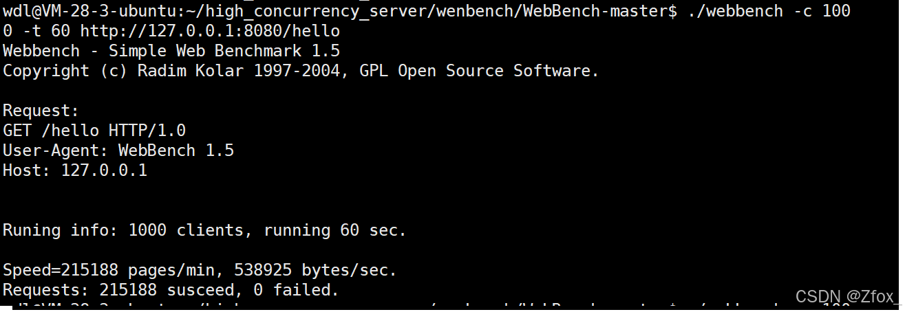 ./webbench -c 1000 -t 60 http://127.0.0.1:8080/hello