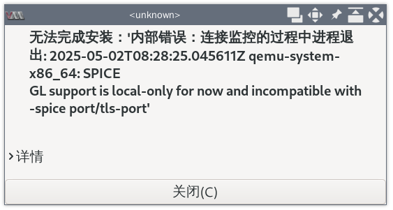 更改 虚拟系统 配置出错:不支持的配置:spice 这个 QEMU 不支持图形