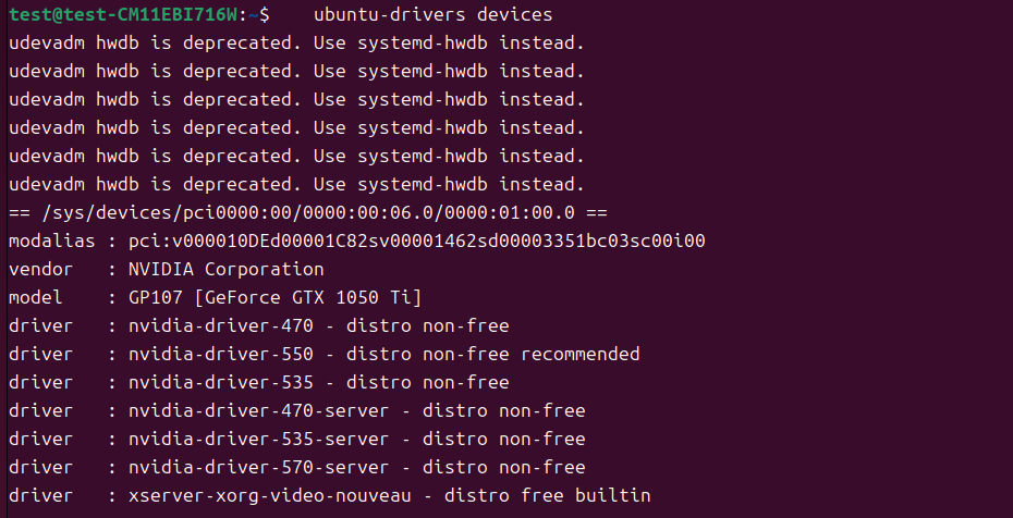 bash:ubuntu-drivers devices
