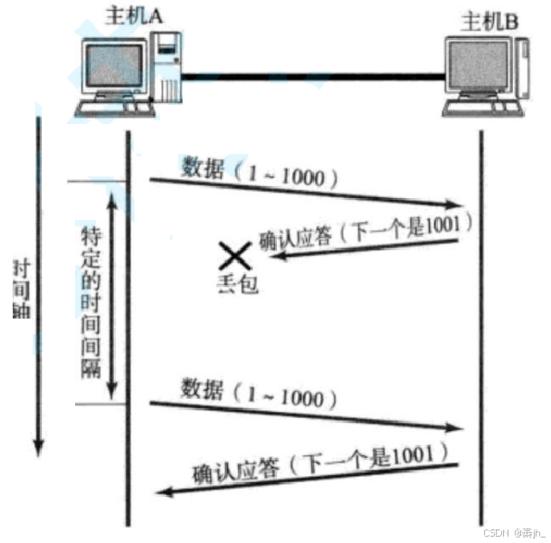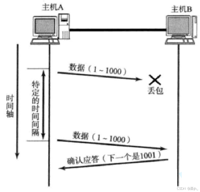 - 主机 A 发送数据给 B 之后, 可能因为网络拥堵等原因, 数据无法到达主机B;