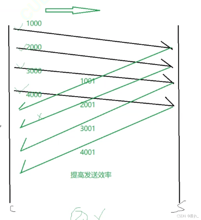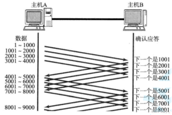 第二种是一次发送多个报文,然后进行批量化应答。这样就提高了发送效率。