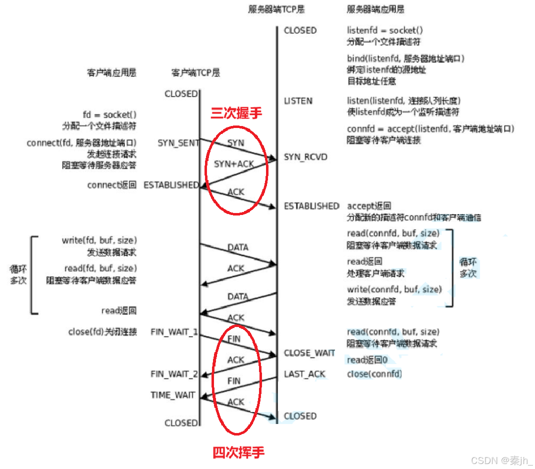 在正常情况下, TCP 要经过三次握手建立连接, 四次挥手断开连接