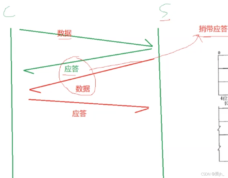 服务器端也会发送数据。如果客户端给服务器发数据,此时服务器要应答,刚好服务器也有数据要发送,那么服务器就会把应答和数据两个报文合并到一起,变成一个报文,叫做捎带应答。此时就需要两个序号了。