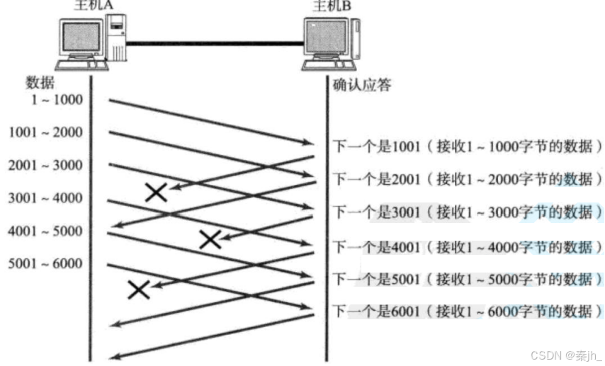 确认序号3001的含义:3001之前的数据全部收到,即还包含了2000,1000的报文。