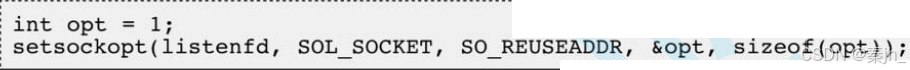 使用 setsockopt()设置 socket 描述符的 选项 SO_REUSEADDR 为1, 表示允许创建端口号相同但 IP 地址不同的多个 socket 描述符