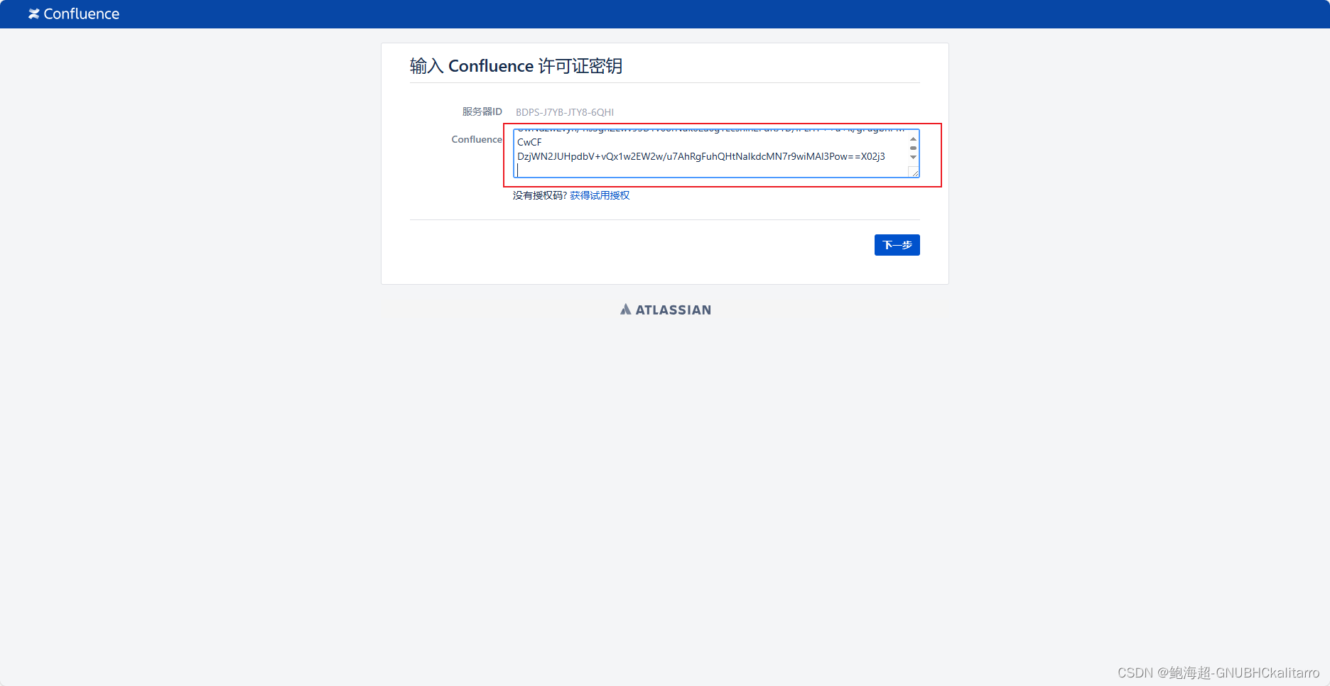 !Bm 然后复制这个密码,输入密码时候不会有任何字符提示,这是一直保护方式 可以进来就行,然后再去修改他的密码 先退出一下mysqld 在[mysqld]下面加入这四行 重启一下mysqld,然后再次进入mysql数据库 再次输入刚刚找到哪些密码!Bm 进入到mysql之后就输入下面这些sql语句,都是mysql里的语句这里不做过多的介绍了,如果想知道请自行搜索 没有报错的就行了 退出数据库 回到刚刚四个包所在的位置 按o回车 按i回车 按y回车 使用浏览器去访问 ip:8090 这里记录下来你的服务器id,我们的id都是不一样的 然后回到服务器关闭服务,然后获取key 关闭了服务 获取key就要使用到atlassian-agent-v1.3.1.zip了 在该文件最后一行添加内容 然后使用命令 BDPS-J7YB-JTY8-6QHI是我的服务器id在命令末尾,你把我的这个换成你的 然后这个就是key 接着就能开启confluence了 把密钥服务进来 当我们选择了mysql发现用不了因为还没有安装mysql引擎 放入引擎 重启服务 这次就可以选择了mysql了 主机就是你服务器的ip,端口默认3306 数据库名称,用户名,密码都是confluence 点击测试连接 成功以后再下一步 在这配置你的用户 开始 mysql -uroot -p