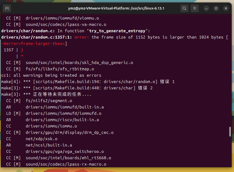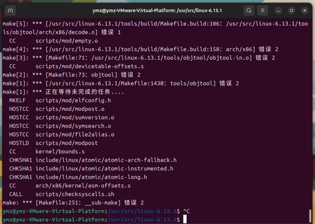 图19 编译内核过程中出现错误
