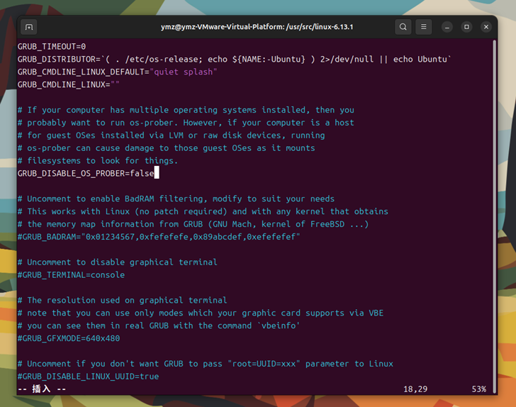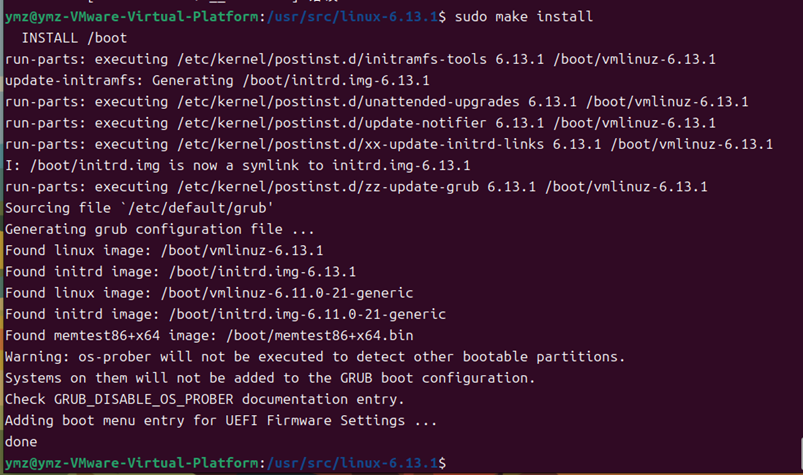 ③安装内核时出现 “Warning: os - prober will not be executed...” 的警告,这是因为GRUB_DISABLE_OS_PROBER可能被设置,导致os - prober工具不被执行,无法检测其他可引导分区并添加到 GRUB 配置中。使用sudo vim /etc/default/grub打开文件,找到GRUB_DISABLE_OS_PROBER这一行,去掉注释符号#并确保其值为false,保存并关闭文件后执行sudo update - grub命令,重新生成 GRUB 配置文件,解决了该警告问题。