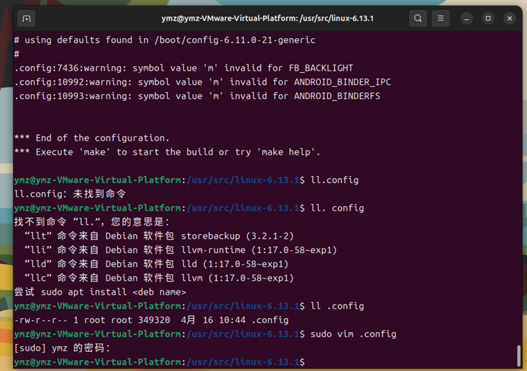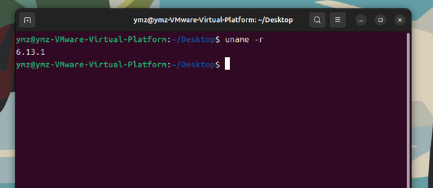 执行uname -r查看内核版本。结果是6.13.1,说明成功。