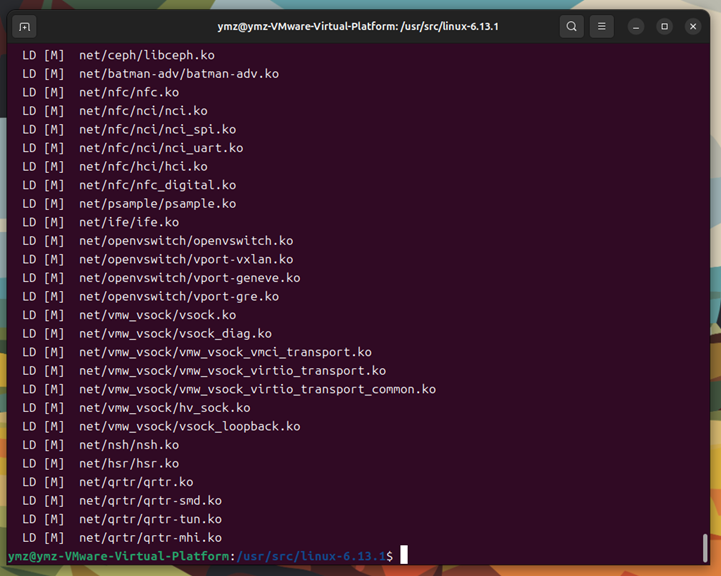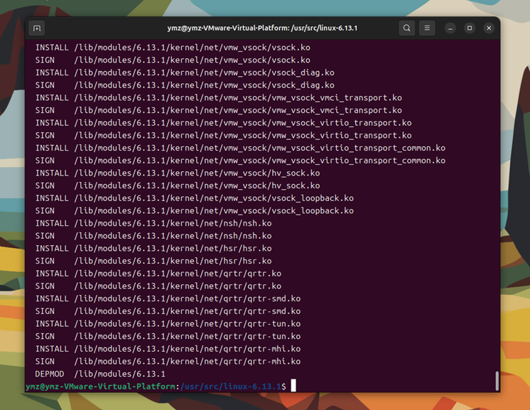 接下来是编译和安装模块。执行make modules_install。