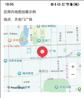 应用内嵌入的地图为华为的花瓣地图,与其他地图开发一致,具备图形绘制相关能力,此处演示绘制图钉,示例代码如下,详细可查看官方文档字段解释:文档中心。