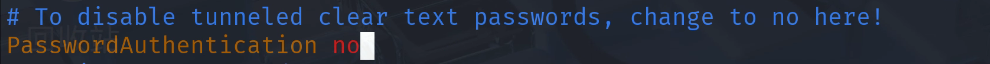 # 避免自己无法登入服务器 ,或使用低权限用户登入服务器后无法取得 root 权限。PasswordAuthentication no