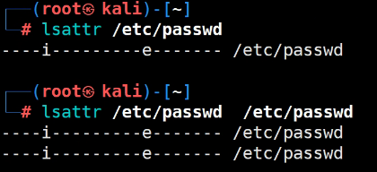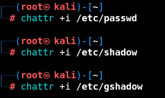 (5)为账户和组相关系统文件加上不可更改属性,防止非授权用户获取权限: chattr命令