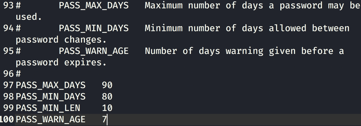 PASS_MAX_DAYS 90 #密码最长过期天数