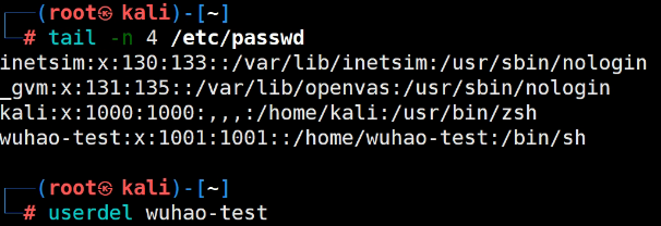 (6)删除用户和用户组: userdel命令、 groupdel命令