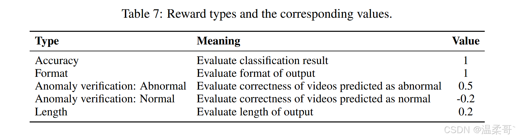 - AVA-GRPO 共包含五种奖励类型,具体值与含义详见表 7。