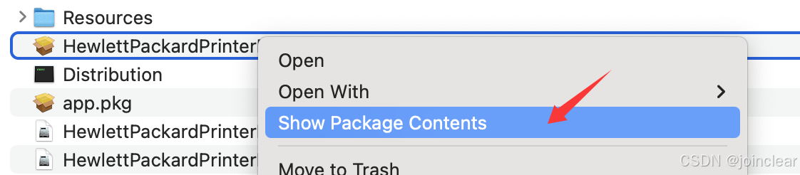 右键:HewlettPackardPrinterDrivers.pkg,显示包内容。