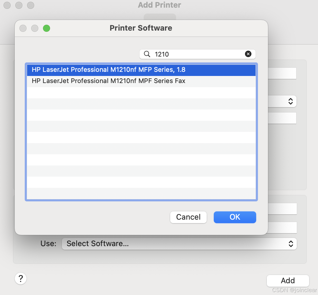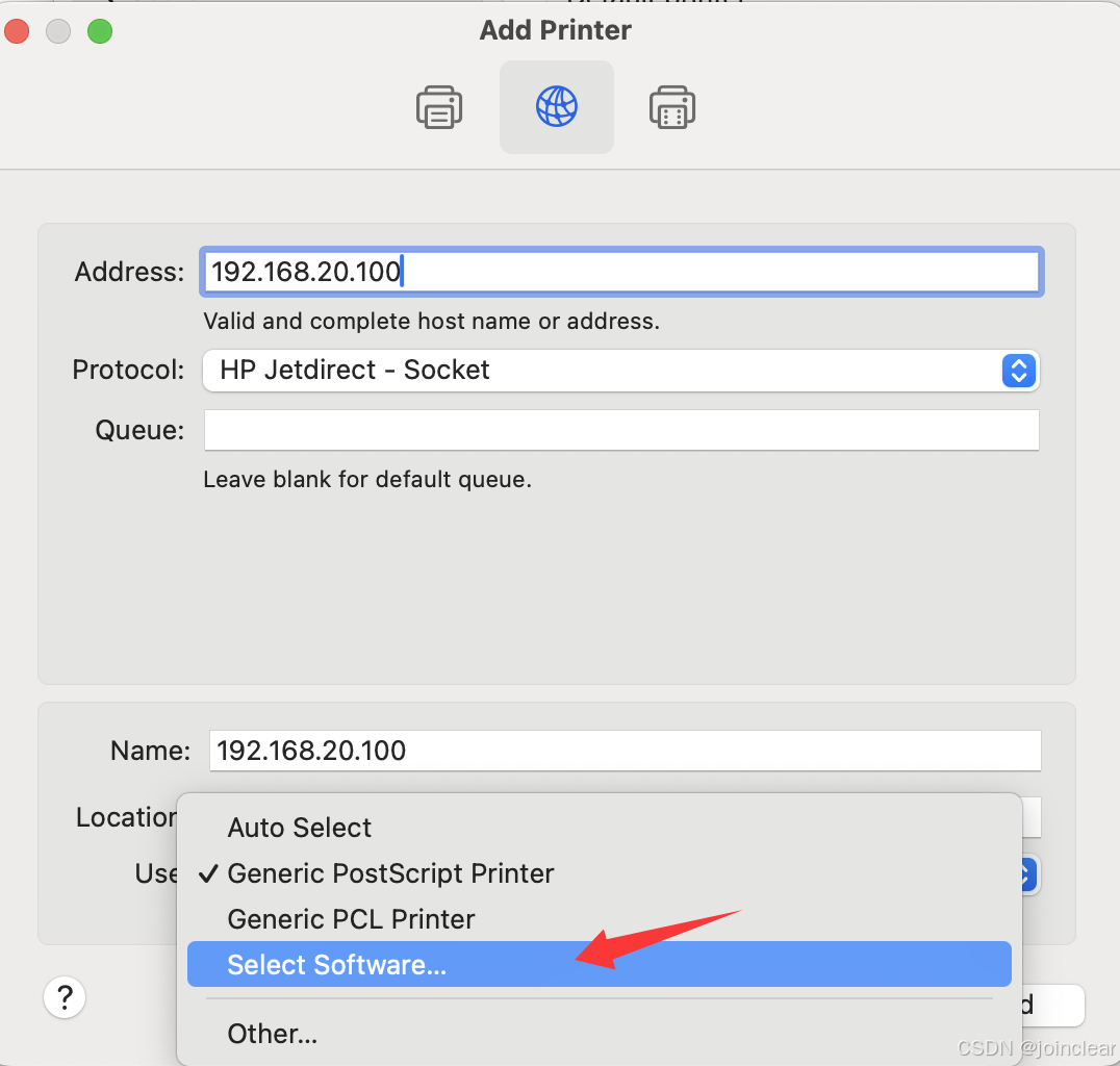 打开“系统设置”,开始添加打印机,Use里面选择“Select Software”: