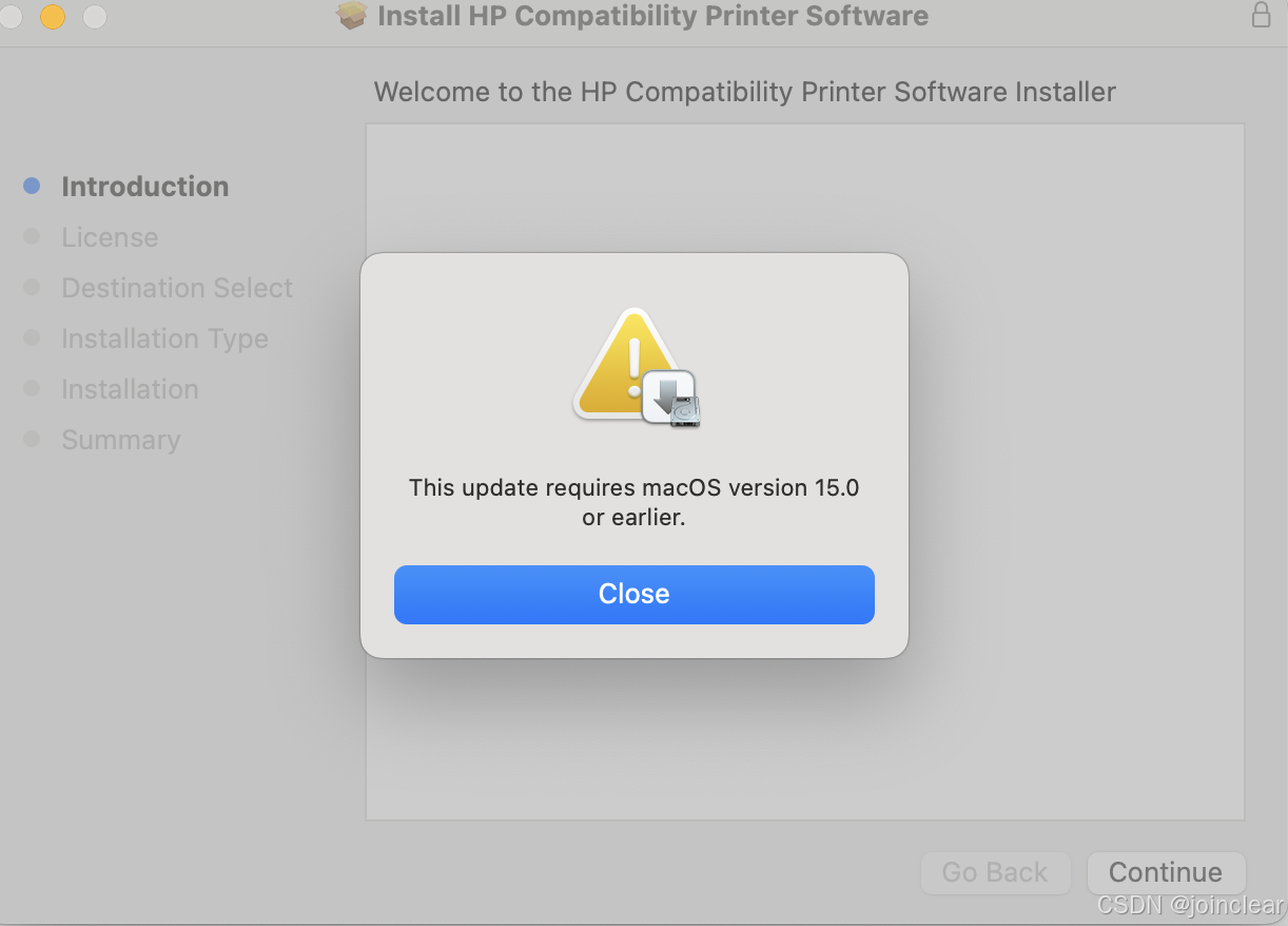 【问题记录】08 MAC电脑,安装HP打印机驱动,提示:此更新需要macOS版本15.0或更低版本