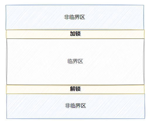 • 在进程中涉及到互斥资源的程序段叫临界区。你写的代码=访问临界资源的代码(临界区)+不访问 临界资源的代码(⾮临界区)。
