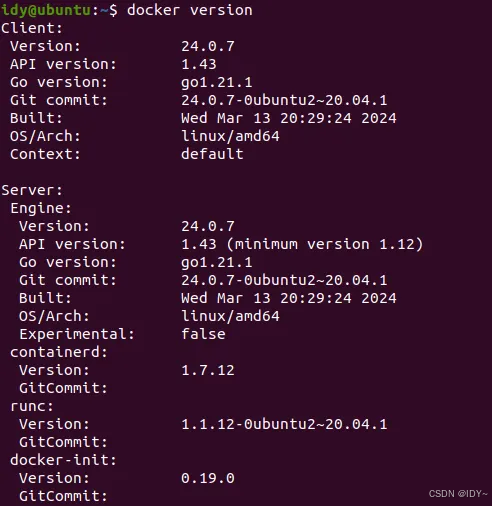 我安装的版本分别为:docker 24.0.7 和 docker-compose 1.25.0 。