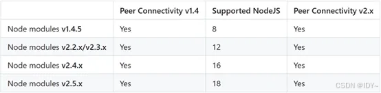 Node.js 的版本要与 Fabric 的版本对应,参考如下图片: