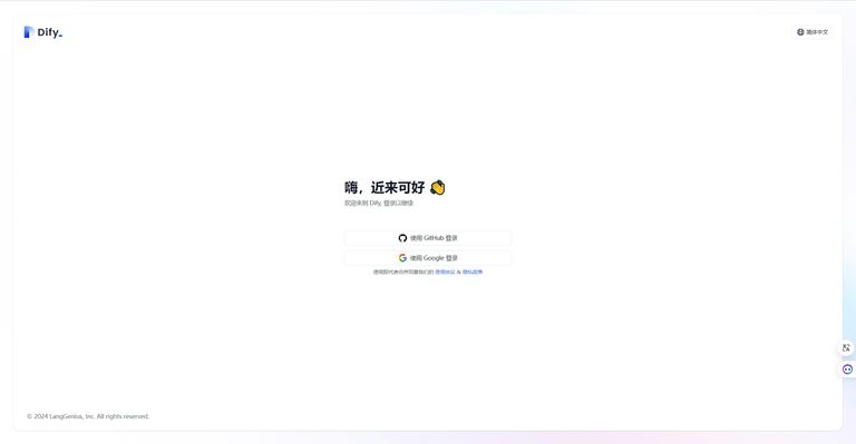 首先,登录Dify官方应用平台,你可以选择使用Github登录或者使用Google登录。此外,你也可以参考Dify官方教程Docker Compose 部署 | 中文 | Dify 私有部署,Dify是开源项目,支持私有部署。