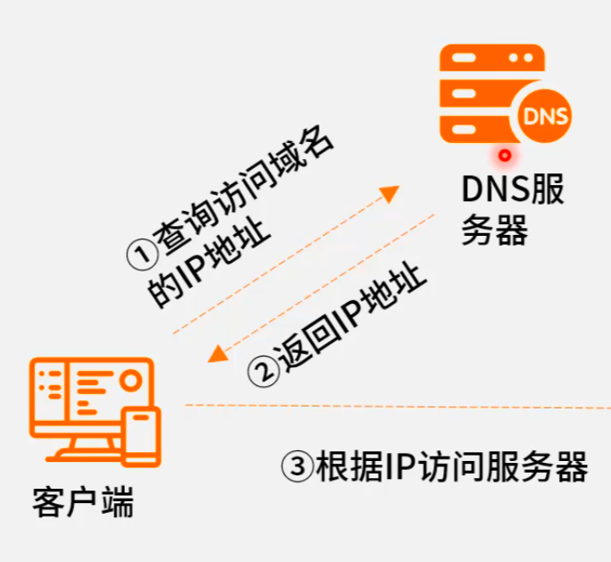 客户端首先通过DNS找到域名对应的IP地址,然后根据IP地址访问服务器。