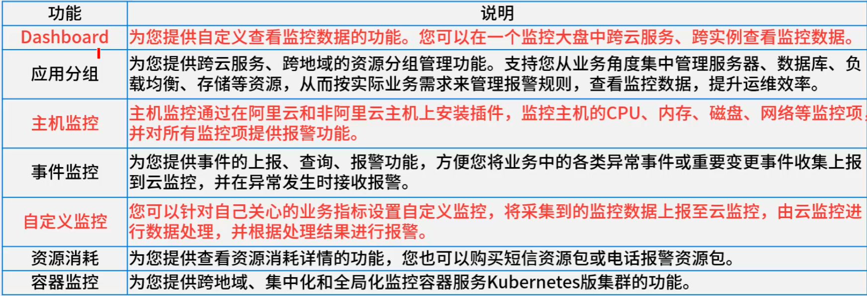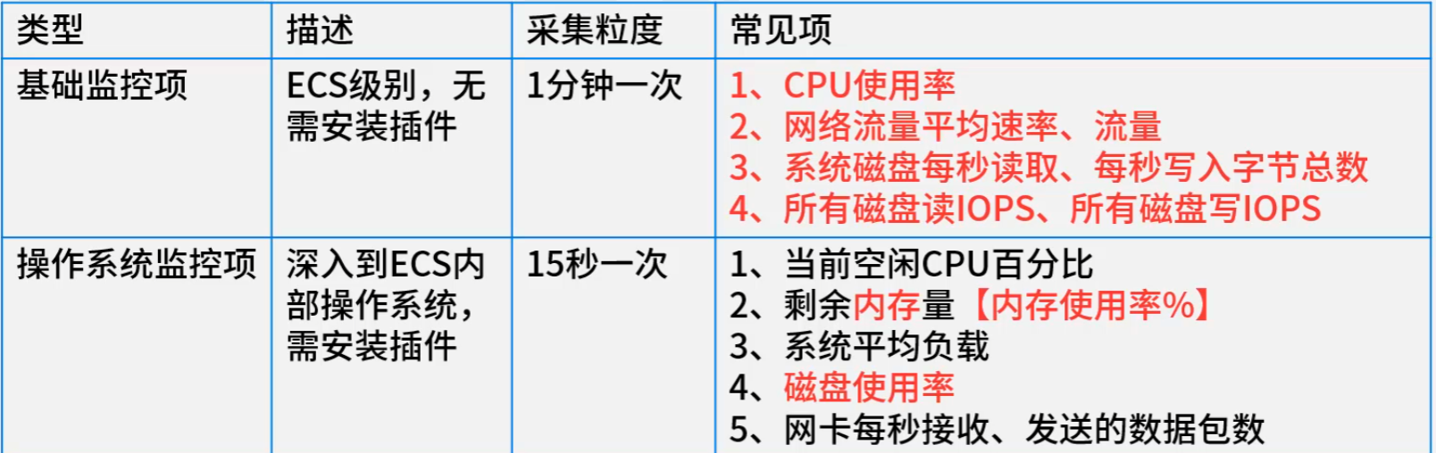 包含 基础监控项和操作系统监控项,操作系统监控项支持非阿里的云服务器,但是要安装插件。